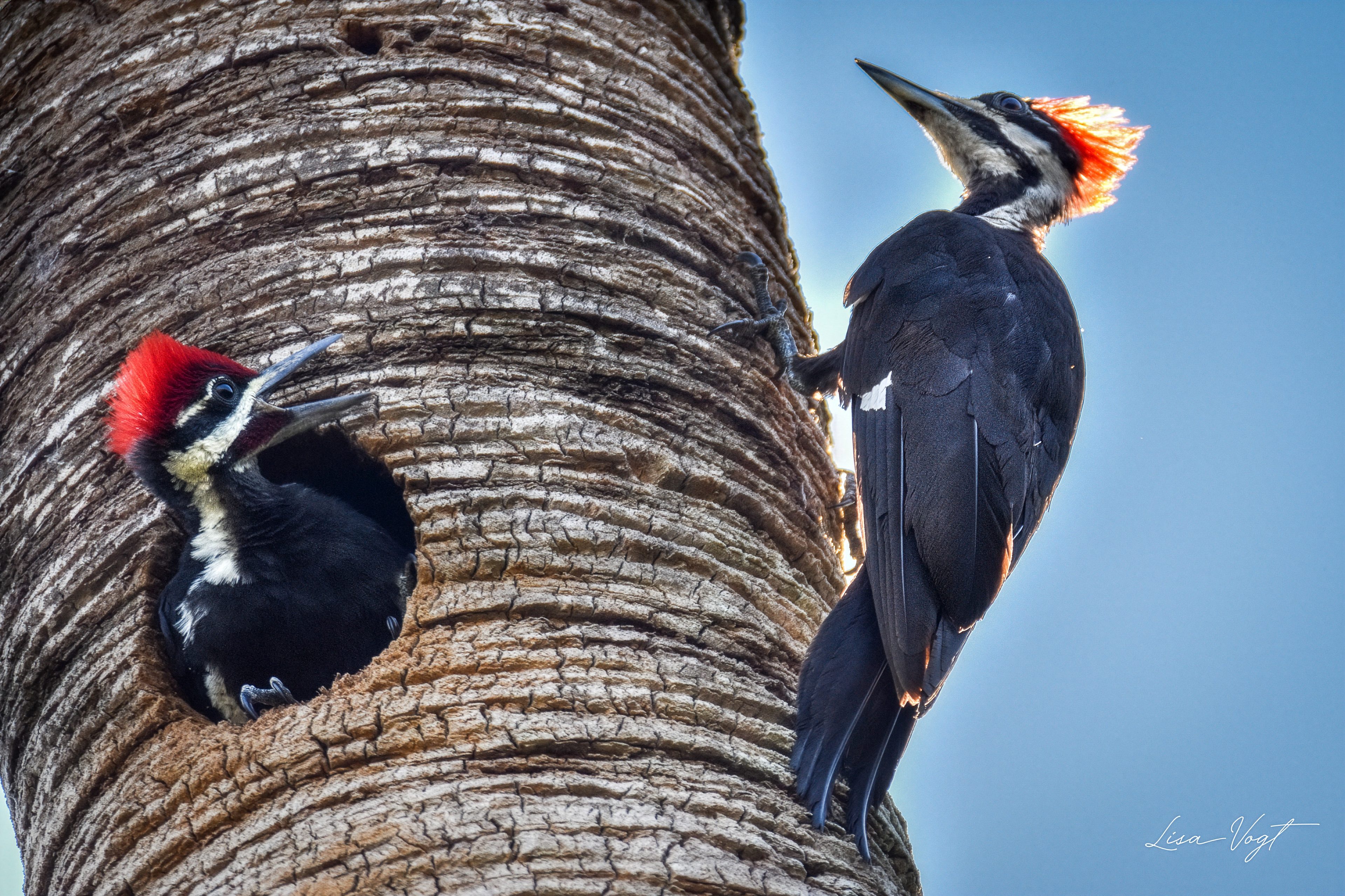 Pileated woodpecker and young, Circle B Bar Reserve, Polk County, Florida