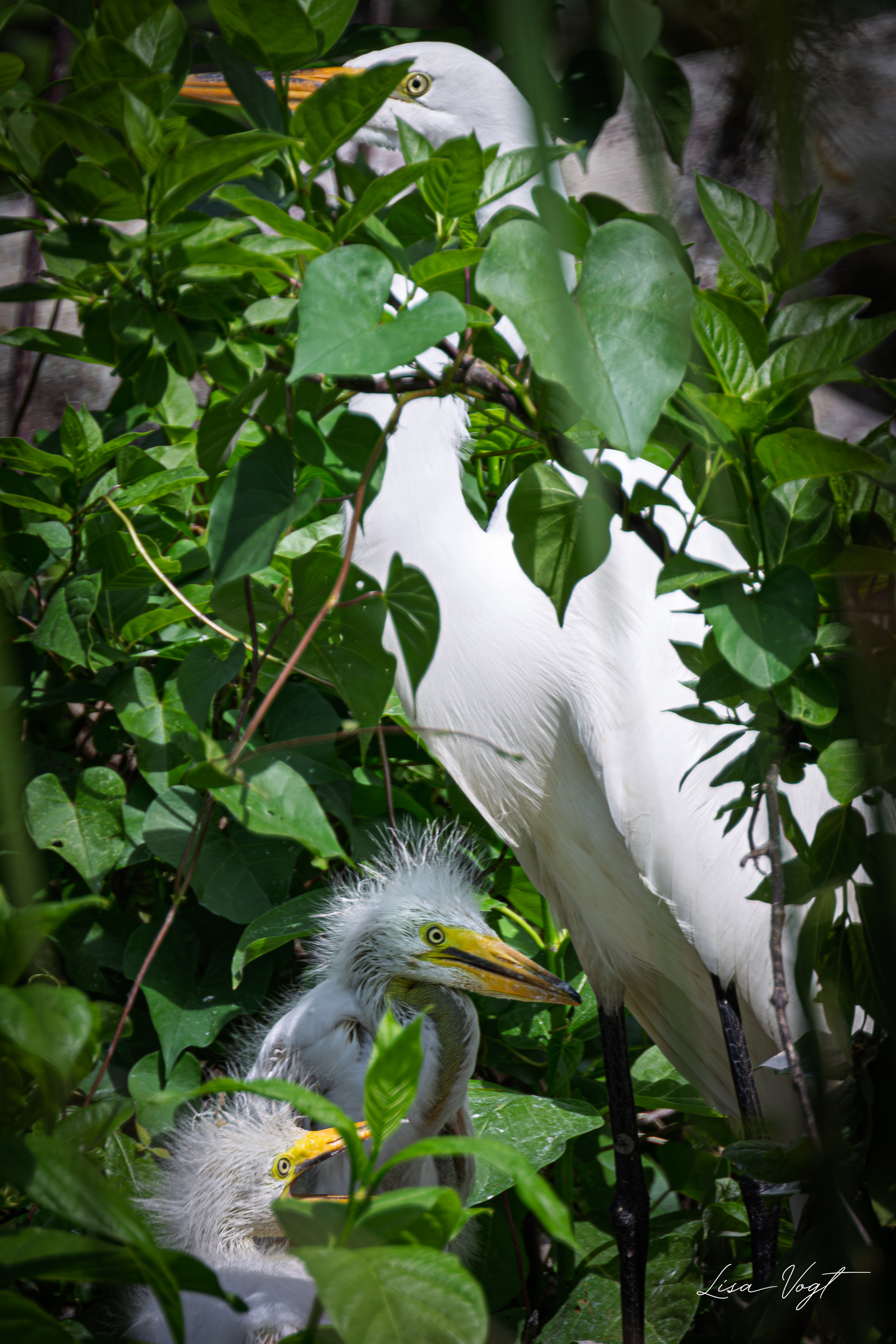 White heron family, Lake Dora, Florida