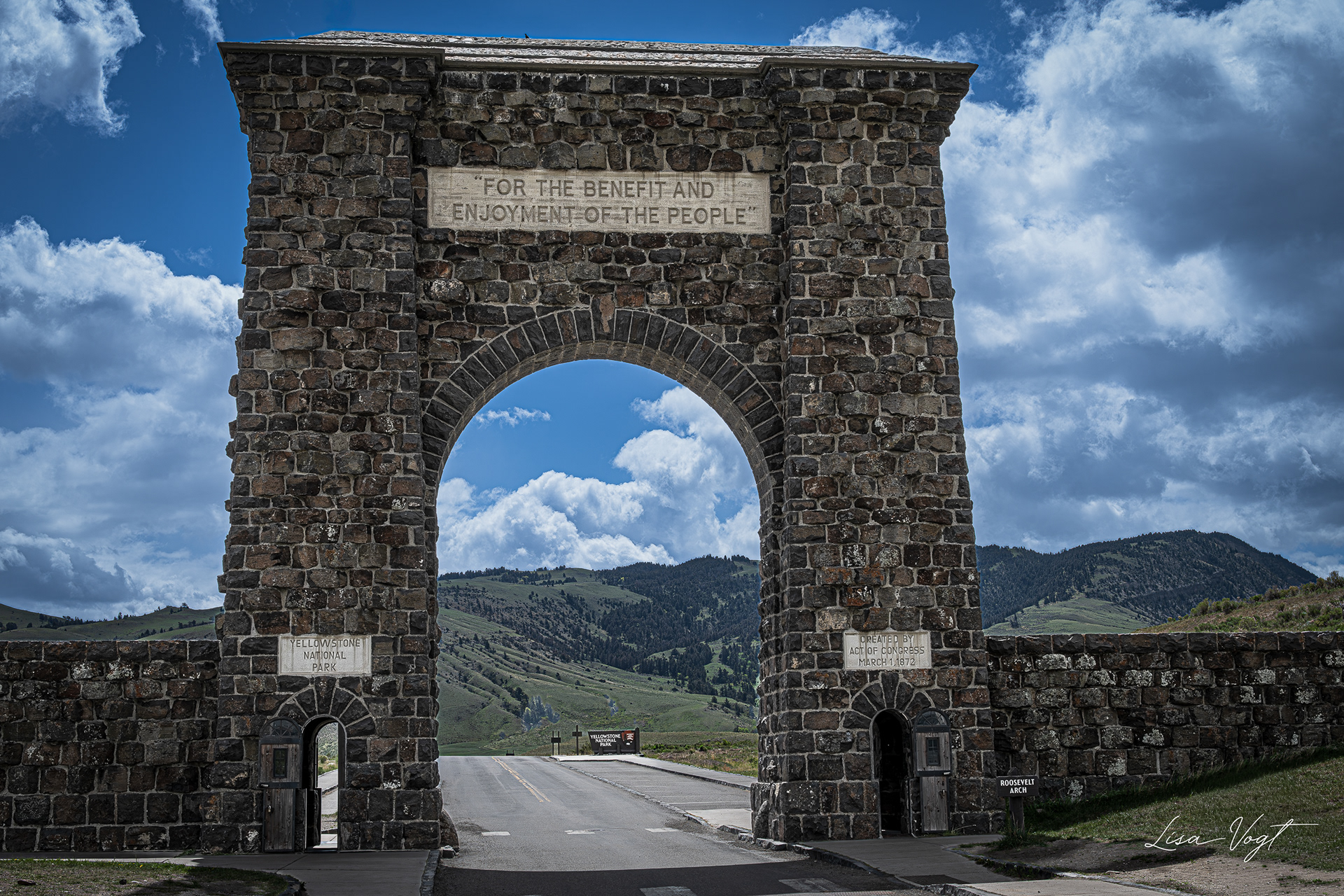 Roosevelt Arch, north entrance Yellowstone National Park, Gardiner, Montana
