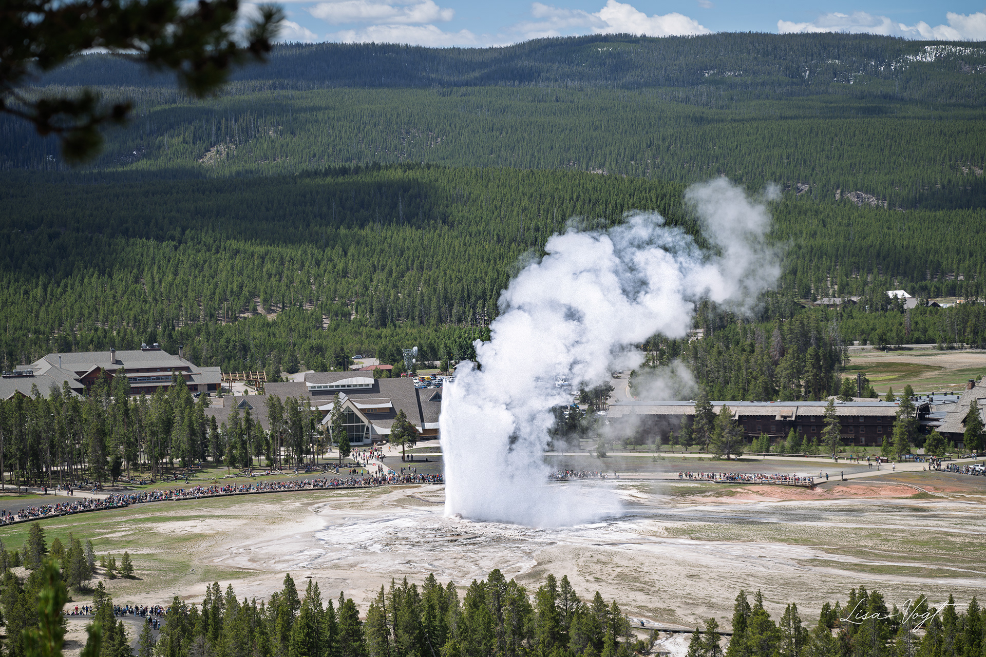 Old Faithful Geyser, Yellowstone National Park, Wyoming. View from Observation Point.